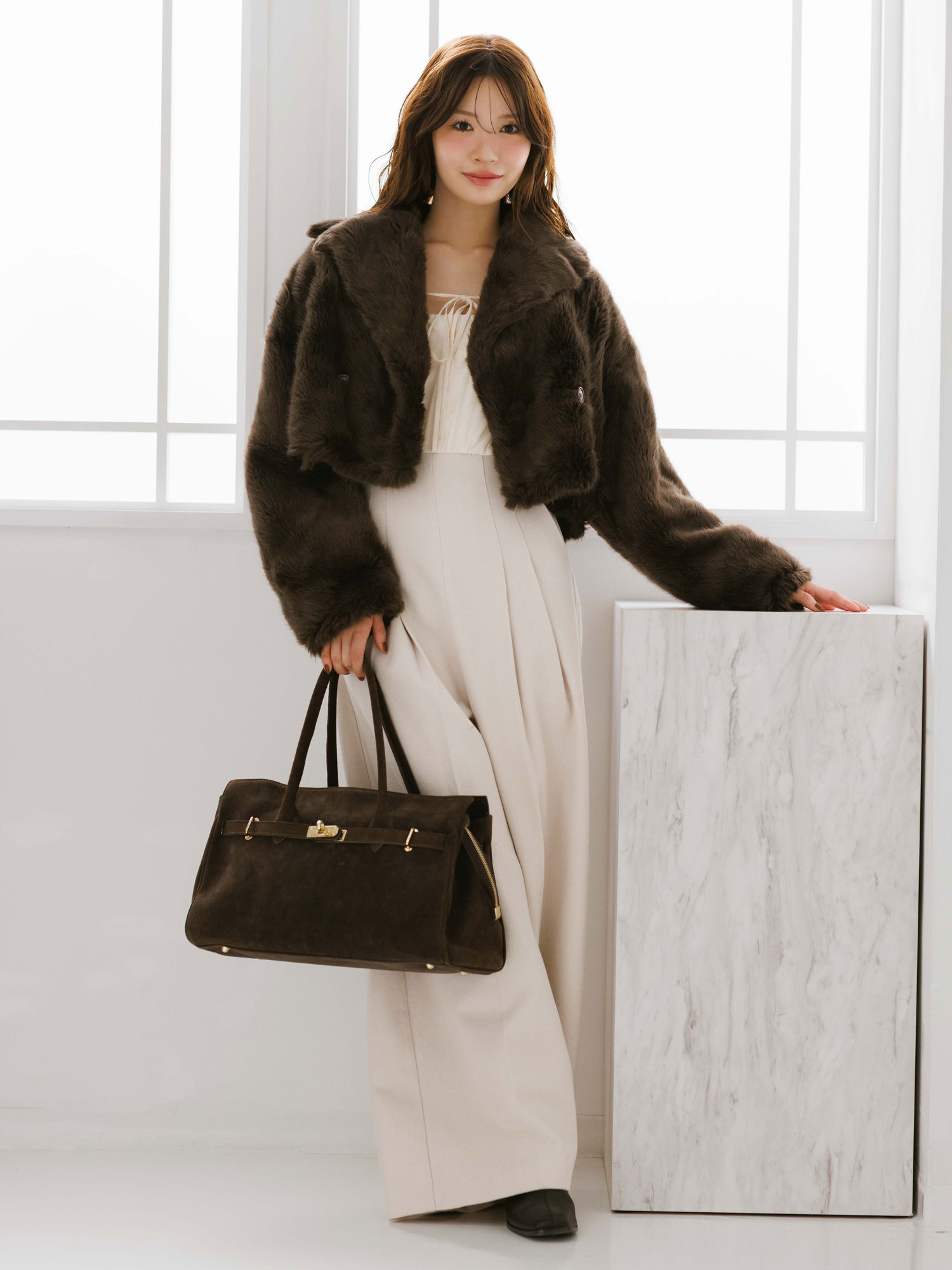 STAFF STYLE 2021.10.13 モデル モデル / 150 1,258view プチゴージャス❤︎可愛いエコファーコート // 去年大人気で、 一瞬で無くなってしまったファーコートが今年も帰ってきましたー♡ 新色のライトグレーを着てみました。 このモフモフ気持ち良い肌触りのファーコートは、 毛が上むきに逆立っているので毛が抜けにくいんです!! さりげなくポケットもついているんです、嬉しいポイントですよね❤︎ この見た目なのに、 とってもとっても軽くて更にしっかり防寒対策が出来る暖かさなので、 本当にオススメです❤︎ エコファーコクーンコート ¥17,600 購入する オープンショルダーマーメイドニットワンピース ¥12,100 購入する KEYWORD OTHER STAFF STYLE 本社STAFF ERI / 158 25view 2025.11.01 本社STAFF MIHO / 163 27view 2025.11.07 モデル 中川紅葉 / 158 0view 2025.11.17 モデル 中川紅葉 / 158 10view 2025.11.13
