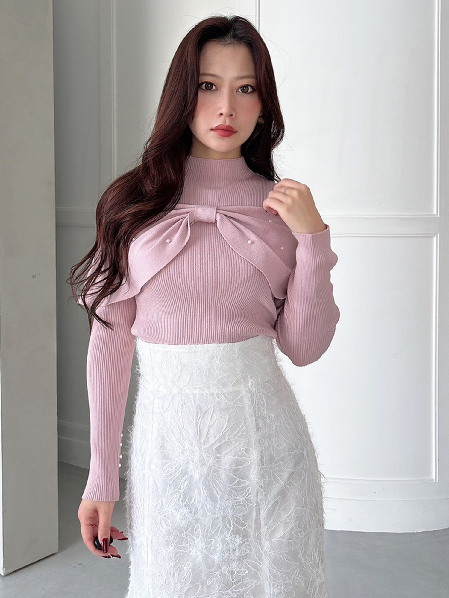 STAFF STYLE 2020.02.11 モデル / 155 953view 幾何柄のケミカルレースとドットプリーツの異素材ドッキングワンピースは一枚で主役級のアイテム。 デコルテが透けているのも女性らしさがプラスされます。 上身頃がブラックなので、結婚式などのパーティーシーンにも使いやすいです。 スカートは敢えて広がりすぎないシルエットが大人っぽい雰囲気にしてくれます。 レース×ドットプリーツロングワンピース ¥16,500 購入する KEYWORD OTHER STAFF STYLE 本社STAFF MIKA / 155 3view 2026.01.05 本社STAFF MIHO / 163 11view 2026.01.02 本社STAFF MIHO / 163 14view 2026.01.01 本社STAFF ERI / 158 8view 2026.01.04