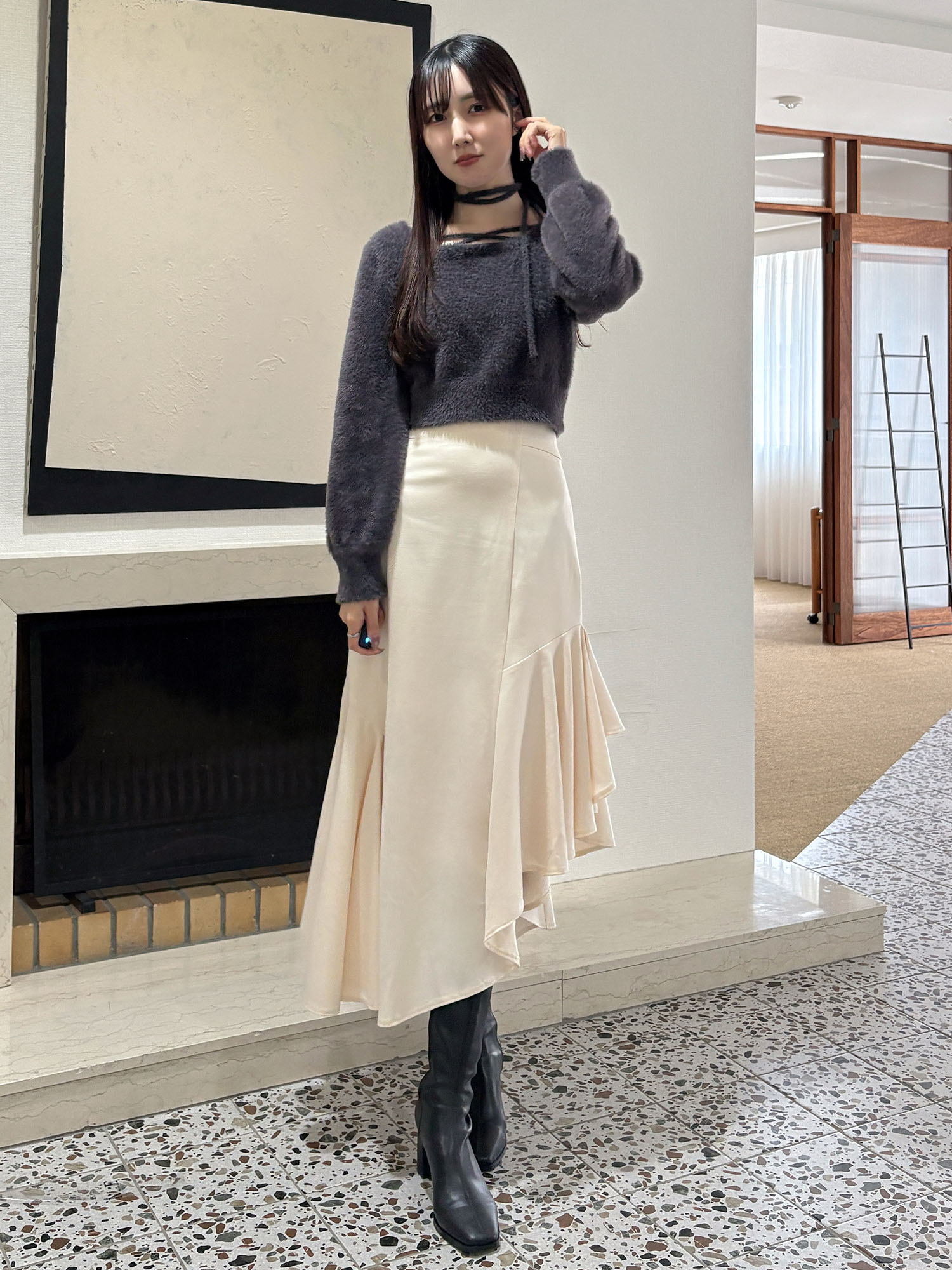 【スカート】コルセットを巻いているかのように、ウエストが絞られて見えてスタイルが良くみえるマーメイドスカートです♡歩くたび揺れ動く裾が女性らしくてとっても素敵です。どのトップスとも相性抜群なので、コーデを考えるのが楽ちんですね♡