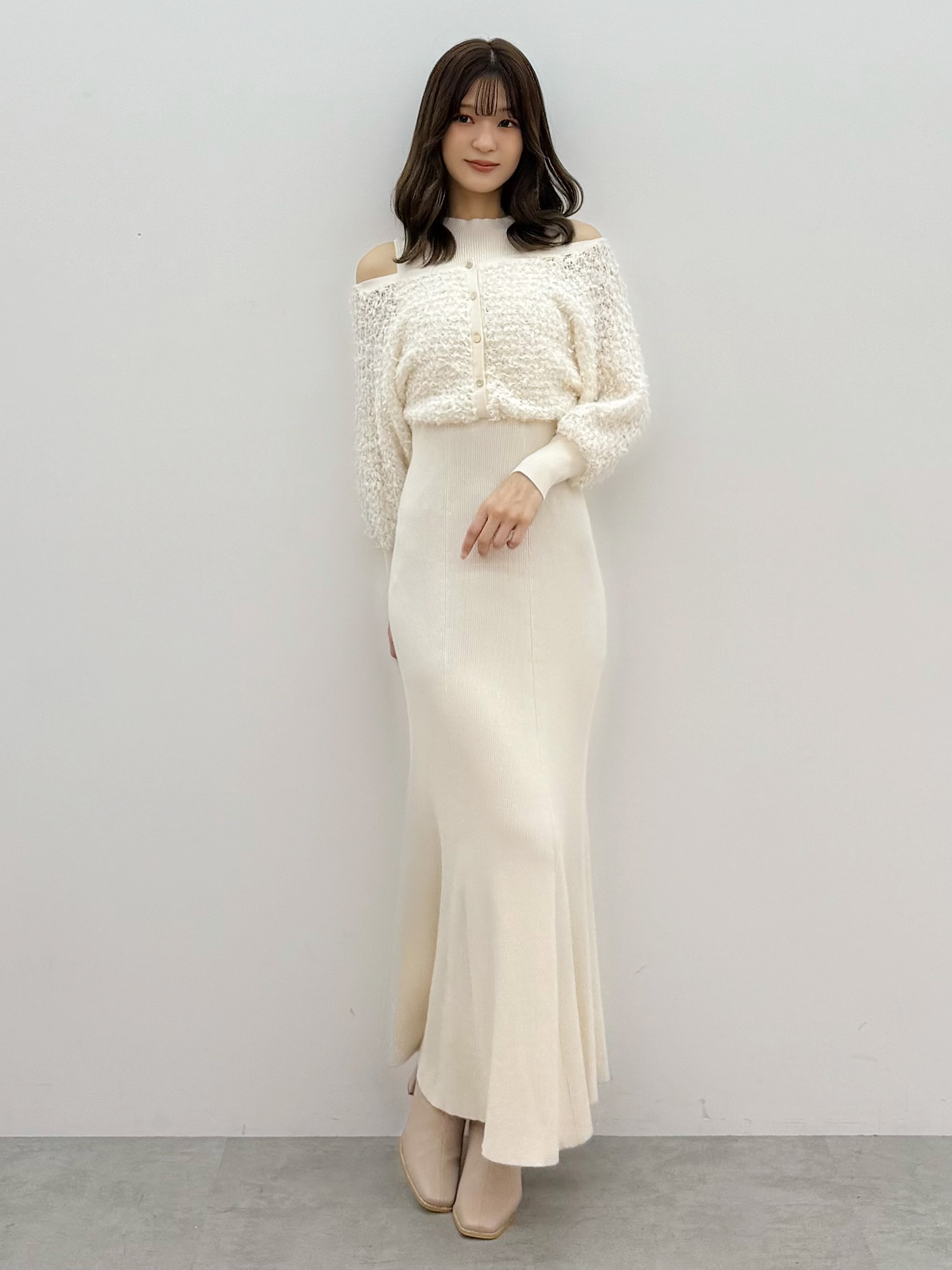 STAFF STYLE 2024.02.04 本社STAFF YUI / 158cm 310view 裾のレースの透け感が上品な、大人可愛いニットワンピース。 今季のおしゃれに必須なレースが足元を華やかにしてくれます。 また、前後2WAYなのでカシュクールのデザインや、 Vネックを前にし着方を変えられるのがポイントです。 さらに肩スリットからチラリと見える肌見せが 抜け感を出してくれて、女性らしさを演出。 裾のレースのボリュームのあるマーメイドシルエットと、 上身頃のスッキリさとのメリハリ感が、より美シルエットに魅せてくれます。 2WAYレースドッキングマーメイドニットワンピース ¥15,840 購入する 中綿ショートコート ¥8,800 購入する ショートローファーブーツ ¥15,400 購入する KEYWORD OTHER STAFF STYLE モデル / 160 36view 2025.10.01 本社STAFF MIHO / 163 0view 2025.10.26 本社STAFF MIHO / 163 14view 2025.10.23 モデル 31view 2025.10.02