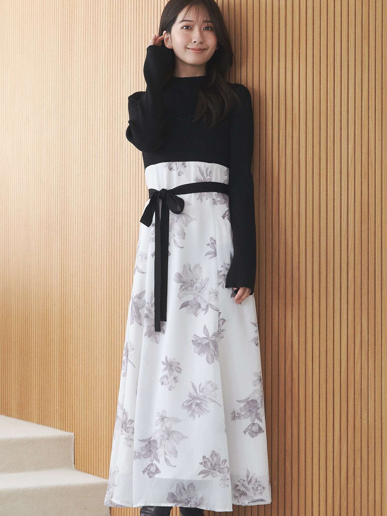 STAFF STYLE 2025.10.01 モデル / 160 2view 水彩タッチで描かれた華やかな花柄は、このワンピースのためだけに描かれたオリジナル柄です。 ブーケのように数種類の花を組み合わせています。 ニット部分はビスチェのような切替が入っているのですっきりとスタイルアップ効果が期待できます。 スカート部分は体にフィットするラインになっていますが、共糸のベルトを巻くとよりウエストラインを強調することができます。 デイリー使いにもお出掛けシーンにも活躍する万能な1枚です。 フラワードッキングロングスリーブワンピース ¥17,930 購入する KEYWORD OTHER STAFF STYLE モデル 39view 2025.09.03 モデル 23view 2025.09.07 モデル / 158 3view 2025.09.30 モデル 28view 2025.09.06